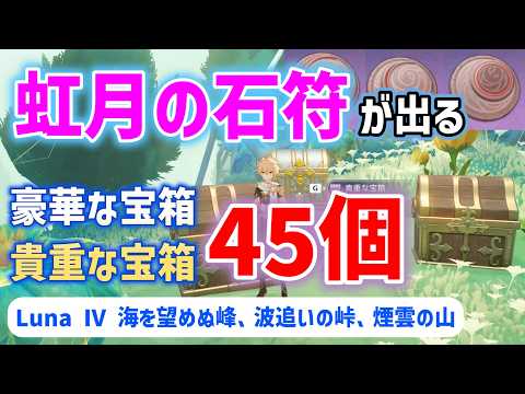 虹月の石符が出る豪華な宝箱・貴重な宝箱「全45個」 海を望めぬ峰、波追いの峠、煙雲の山 聖啓の塵 月の宝庫 地霊壇の場所 ナド・クライ Luna Ⅳ 原神 攻略